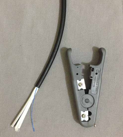Para la chaqueta externa, es bueno usar un Pelacable (Stripper Tool) ajustable, como el que observan en la siguiente foto: