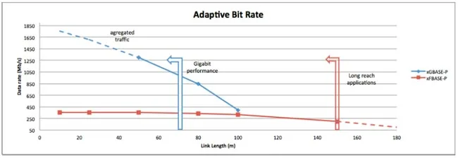 Por último, los PHY xGBASE-P y xFBASE-P suponen los anexos opcionales que describen las versiones Adaptive Bit Rate (ABR) de 1 y 100 Mbps. La funcionalidad ABR se basa en la adaptación de la tasa binaria a la calidad de la señal recibida para mantener la tasa de error por debajo del objetivo.