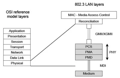 HS-BASE-P sigue la partición lógica de las subcláusulas IEEE 802.3, como se observa en la figura, que asegura interoperabilidad entre sistemas multi-proveedor: