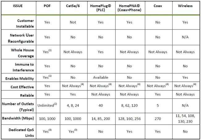 Las redes domésticas basadas en fibra de plástico POF han sido desplegadas en los últimos años como una proposición de valor añadido en comparación con otras instalaciones “cableadas”, como Cat-5e. POF es más fácil de instalar, ya que no requiere conectorización y puede compartir los conductos ya existentes en la vivienda para transmisión de electricidad. Diversos estudios financieros basados en ensayos en campo con POF han mostrado los ahorros, consecuencia de un menor tiempo de instalación: entre un 15 y un 20 por ciento con respecto a alternativas Cat-5e. (Fuente: www.homefibre.com, .