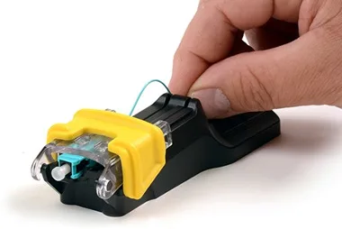 Este sistema de terminación de fibra también cuenta con plantillas de tiras LC y SC integradas, moldeadas directamente en la herramienta para asegurar la correcta longitud de tira de la fibra.