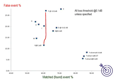 Figura 1 – Comparación de la precisión de un análisis de eventos en OTDRs
